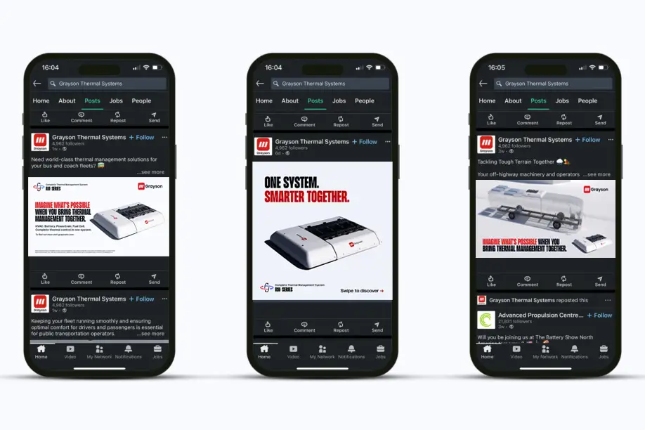 I managed the roll out of a wide range of social media assets to introduce Grayson’s new identity across our LinkedIn audience. This organic campaign featured a mix of static visuals, animations, and carousels, and was designed to build awareness, reinforce key messages, and create a cohesive visual experience that reflected the strength and clarity of the new brand.