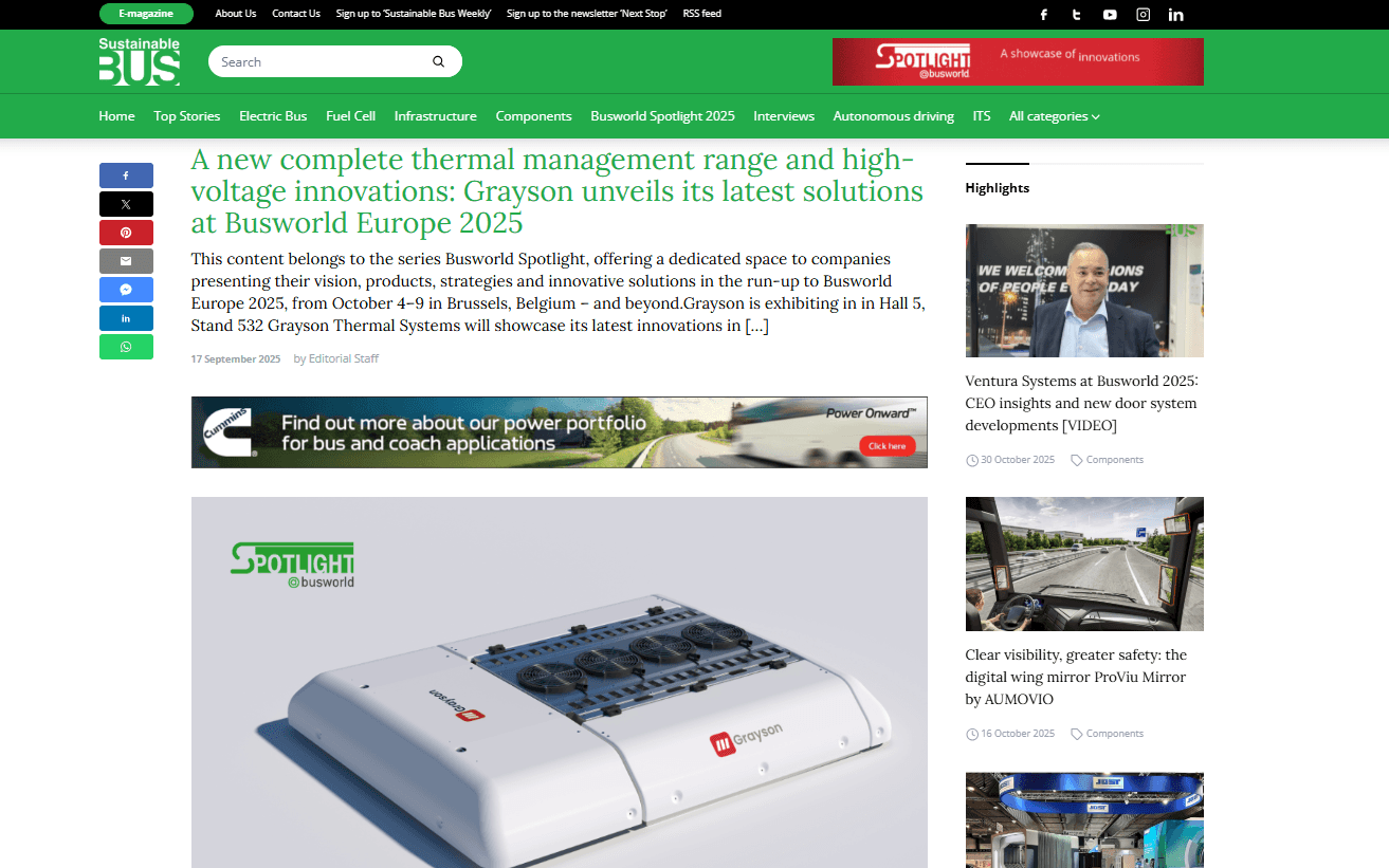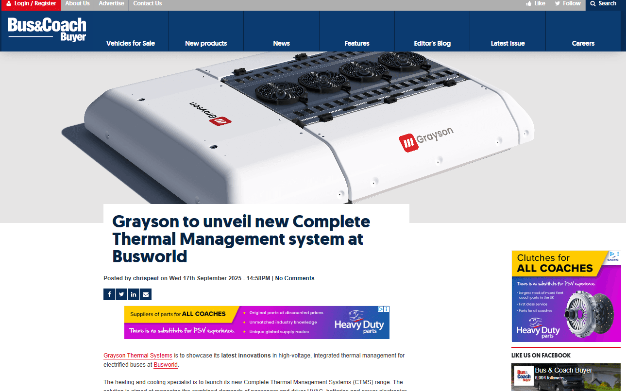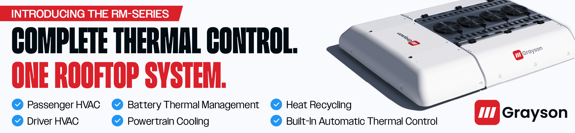 A global leader in thermal management, Grayson designs and manufactures heating, cooling, and HVAC systems for electric, hybrid, and diesel vehicles across sectors such as public transport, rail, off-highway, and energy storage.
